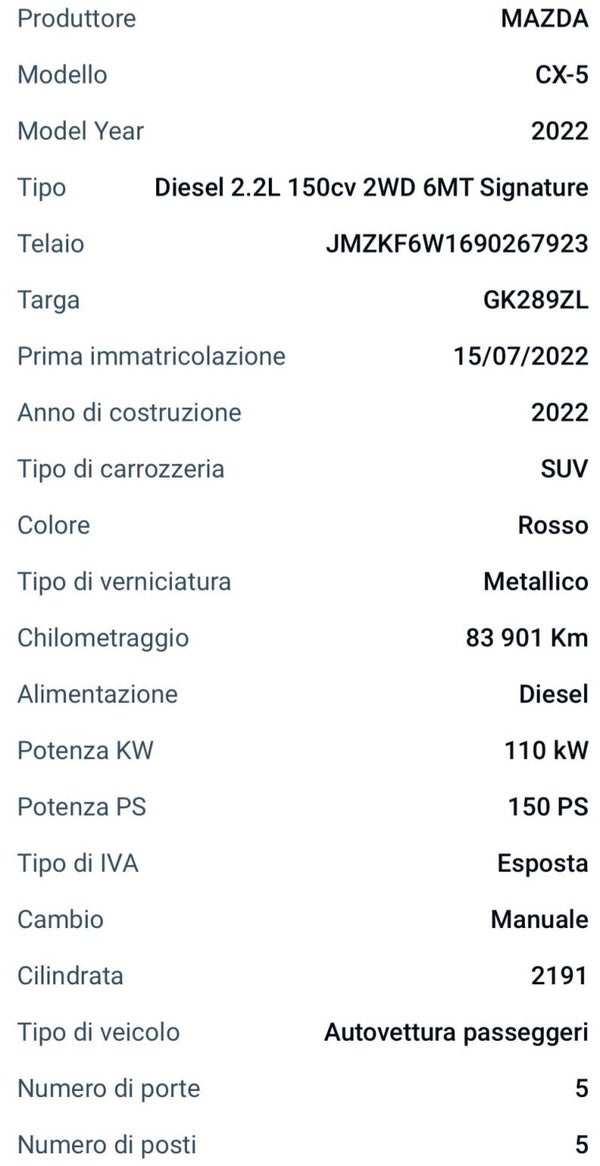 ANNO 07.2022 KM83.901 CERTIFICATI.