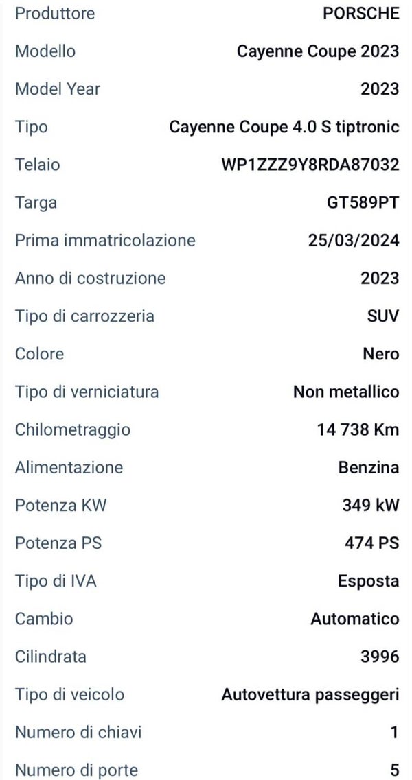 PORSCHE CAYENNE COUPE' 4.0 S GT589PT